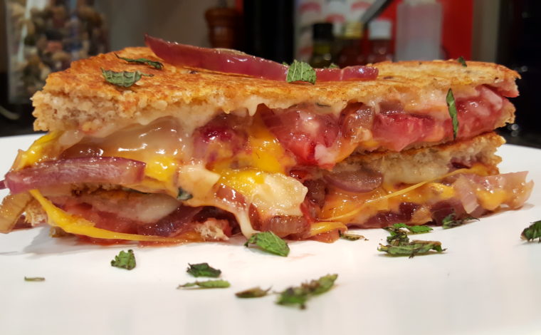Strawberry, Cheddar, Sharp Provolone, Balsamic Glazed Red Onions, Almond, & Mint Grilled Cheese Sandwiches