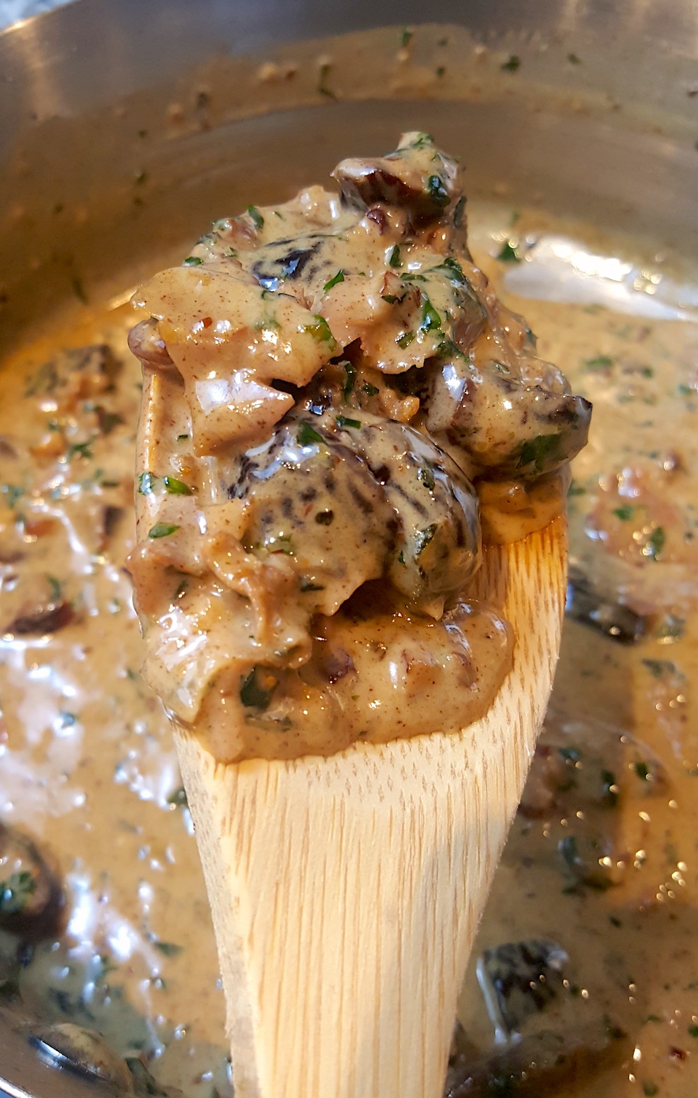 5) Once the sauce is brown, add in the chopped tarragon and parsley, and half of the crispy sage.