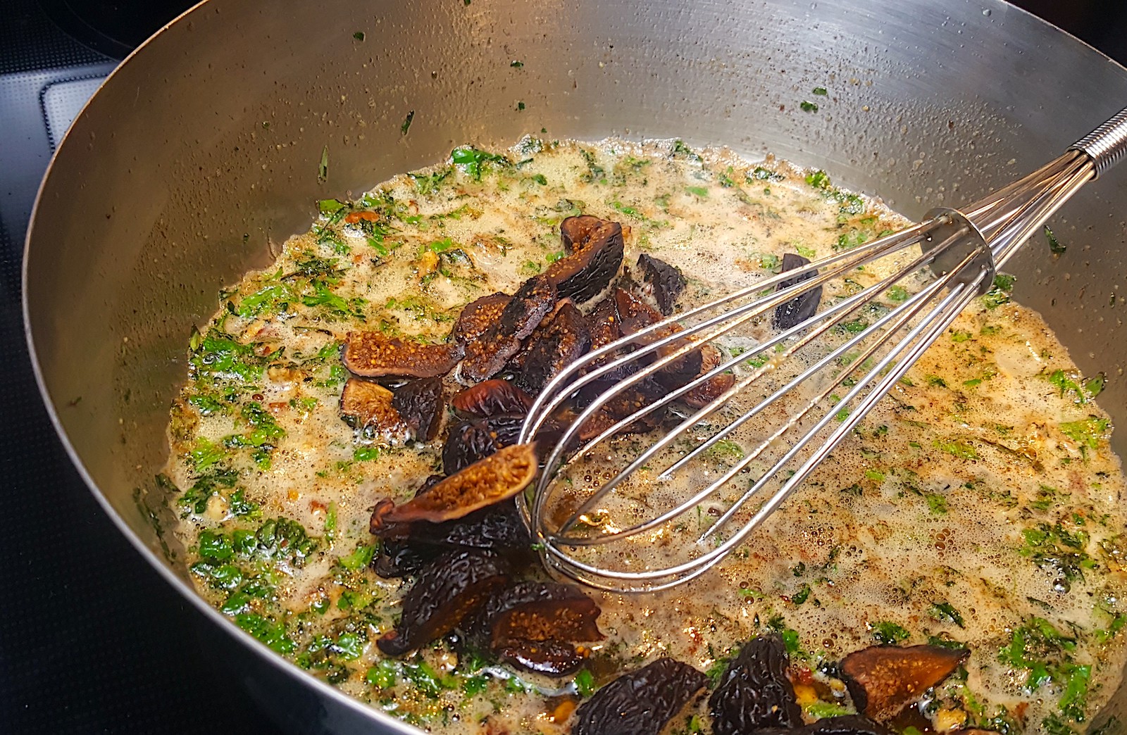 1) Chop all herbs, and the figs, and measure out all of the other needed ingredients.