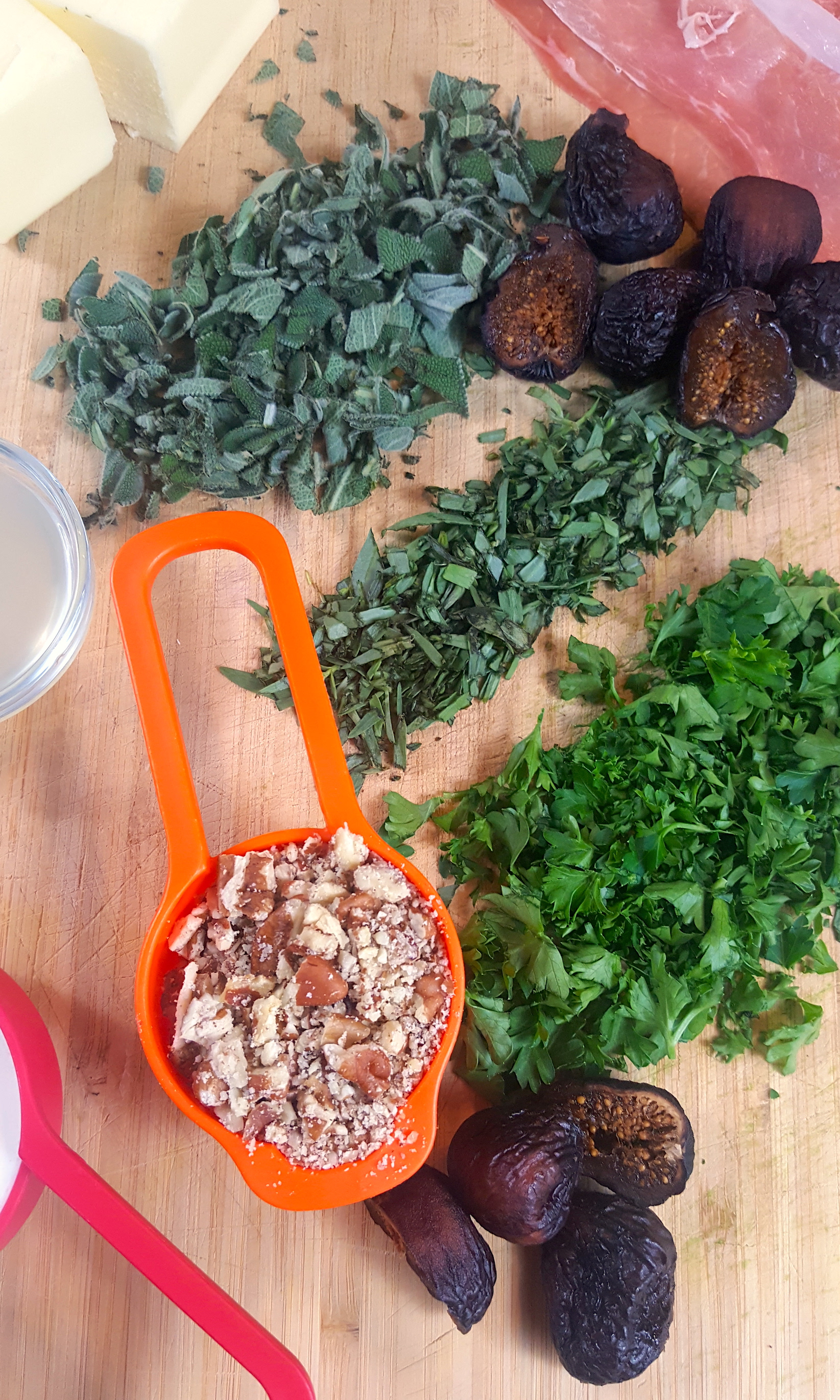 1. Chop all herbs, and the figs, and measure out all of the other needed ingredients.