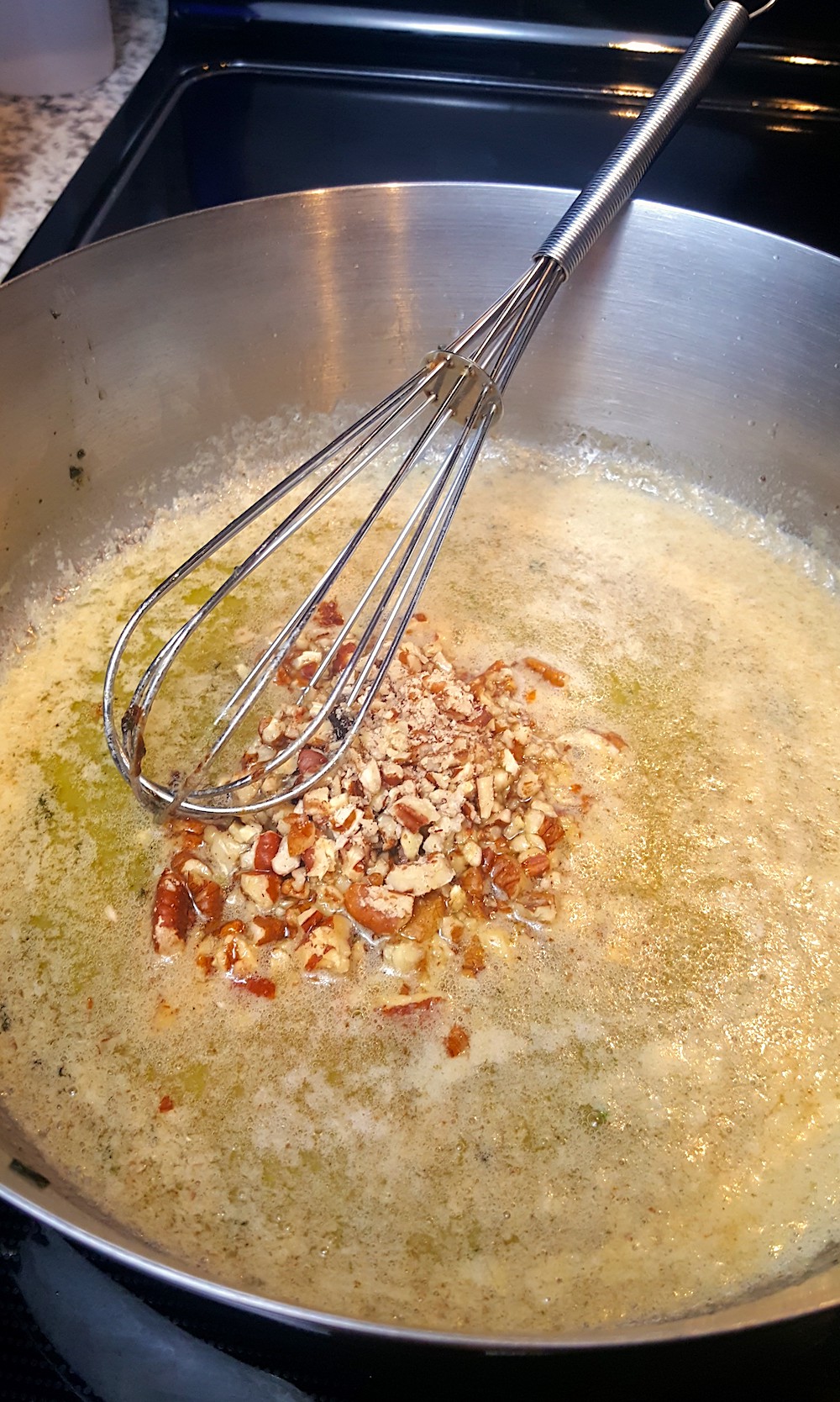 4A) Add the pecans to the butter and whisk well. This is when the sauce will start to turn brown in color.