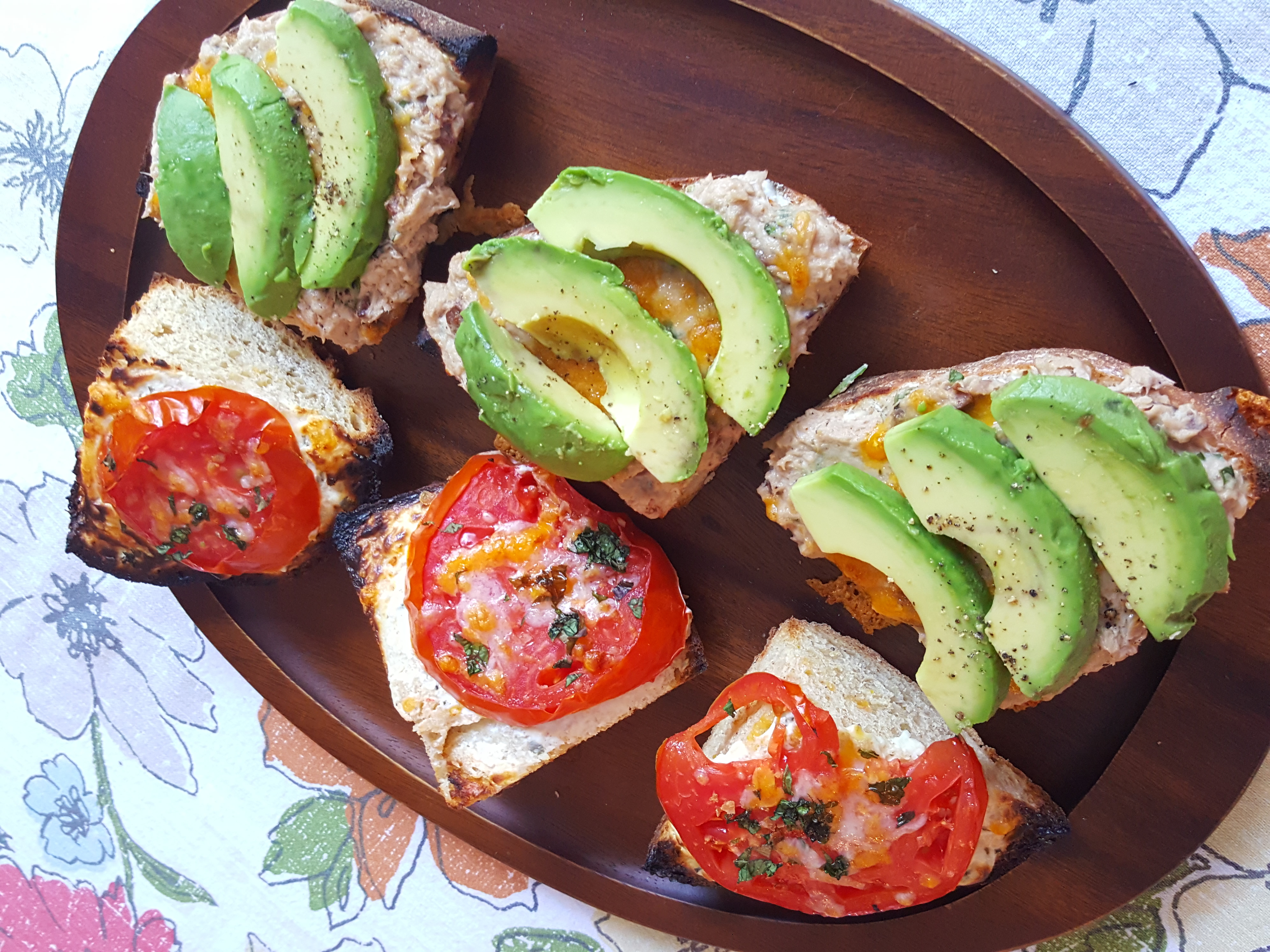 To Make Tuna Melt Sliders w/ Heirloom Tomatoes, Basil, Avocado, & Cheese: